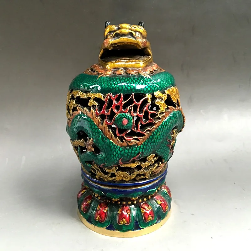 Review Top TNUKK Rare antique bronze painted bronze monsters Smoked stove leading Censer Pure handmade crafts