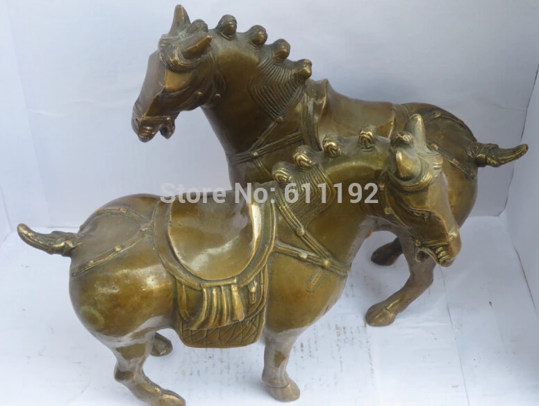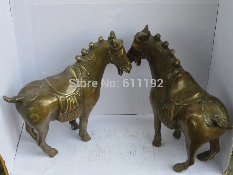 BEST 7.9 Inch A pair Antique copper Hand-carved horse statue Metal craftsHome decoration Holiday GiftAni